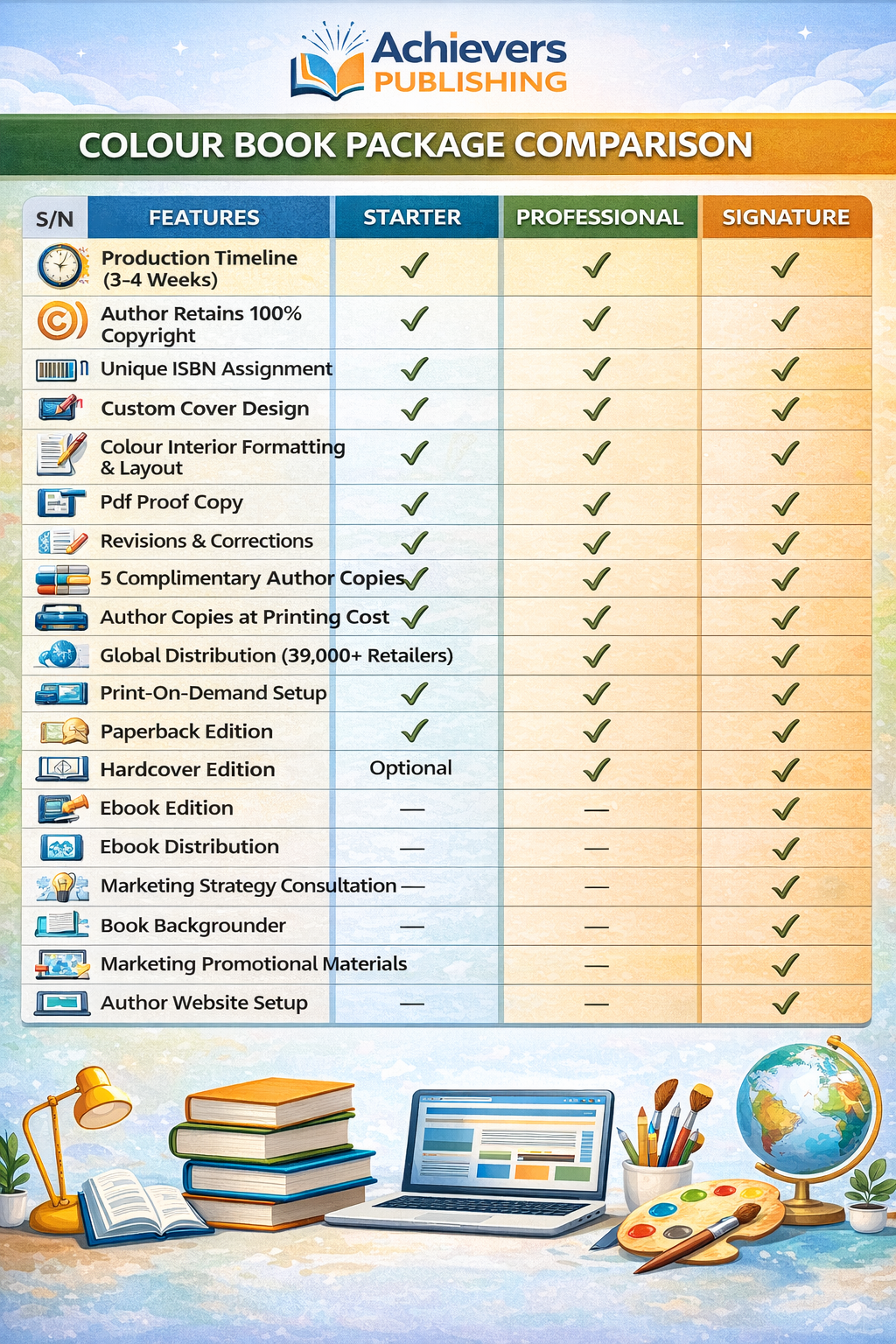 Everything required to professionally publish a full-colour book worldwide. Includes: